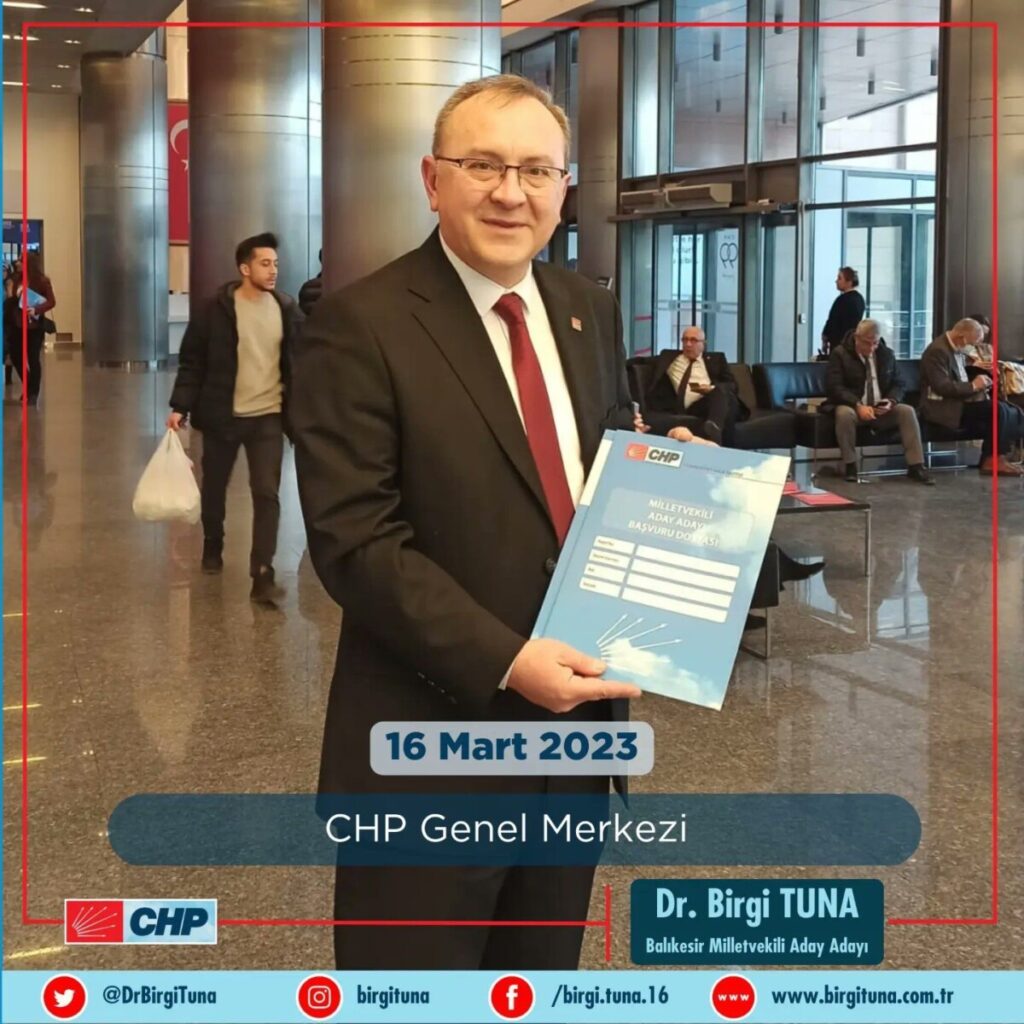 Dr. Birgi Tuna, CHP Balıkesir Milletvekili Aday Adaylığını açıkladı. Burhaniye CHP İlçe Başkanlığı’nda düzenlediği buluşmada milletvekilliği aday adaylığını açıklayan Birgi Tuna kimdir? Gelin yakından bakalım..