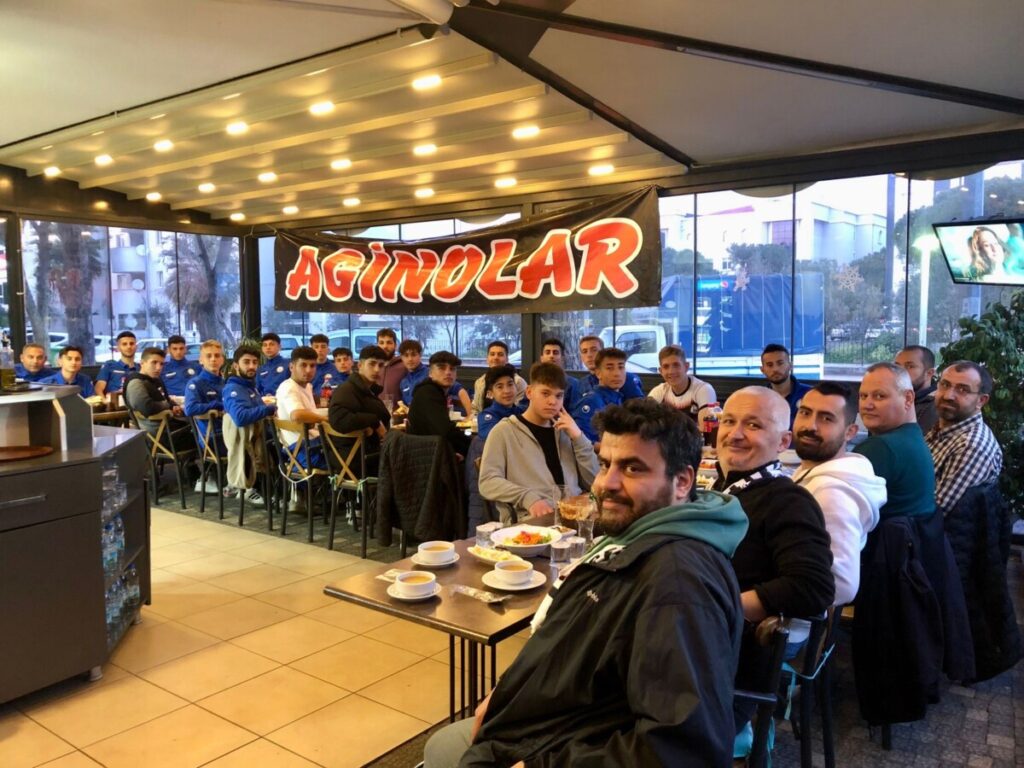 Aginolar Taraftarlar Derneği, Balıkesir Körfez U18 Ligi şampiyonu Burhaniye Belediyespor Altyapı Takımına iftar yemeği düzenledi. Aginolar Taraftarlar Derneği Başkanları Hüseyin Ener ve İlyas Kolaşinli tarafından Defne’m Cafe & Restaurant’ta düzenlenen iftar yemeğine Kulüp Başkanı Nadir Bayram, Futbol Şube Sorumlusu Osman Akkoç, teknik ekip ve tüm futbolcular katıldı.