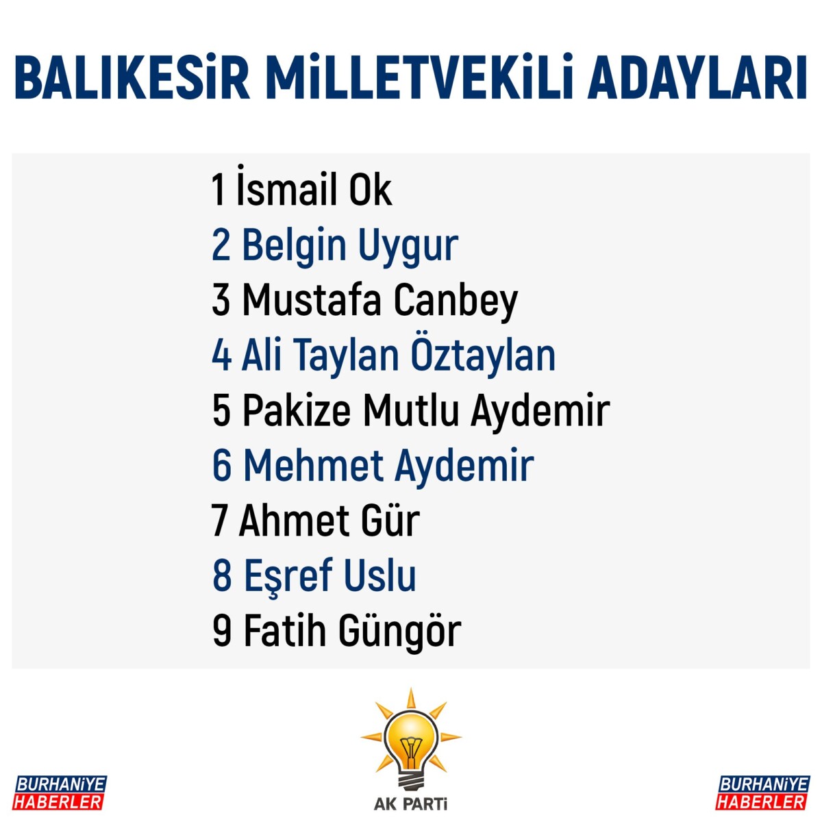Ak Parti Balıkesir Milletvekilleri adayları isimleri için tıklayın