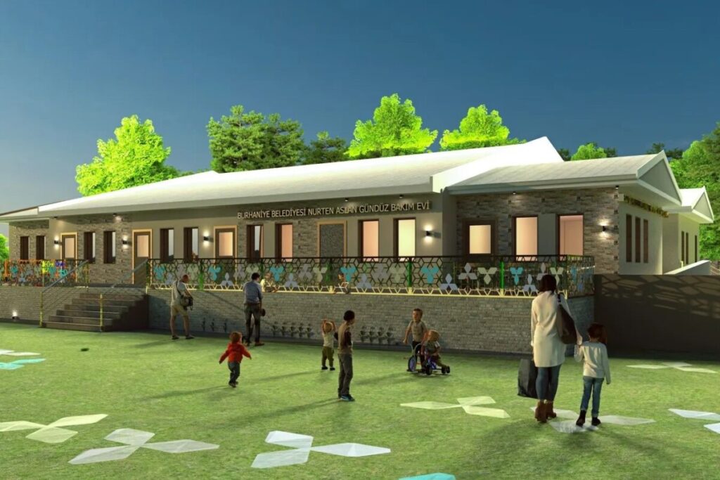Öğretmenler Mahallesi Dr. Rıfat Caddesi üzerinde Hacı Mustafa Müdüroğlu Ortaokulu yanında bulunan mülkiyeti Belediyeye ait taşınmaza, Burhaniye Belediyesinin 3. Çocuk gündüz bakımevinin yapılması için gerekli protokoller imzalandı. Belediye tarafından hazırlanacak projeye göre; 3, 4 ve 5 yaş çocuklar için 6 sınıflı, yemekhane, oyun-etkinlik alanı olan tek katlı Çocuk Gündüz Bakımevi yapılması planlanıyor. Toplam 656 m² inşaat alanlı proje için eğitime katkı amacıyla Aslan Yol Ltd. Şti. tarafından hibe olarak yapılacak gündüz bakımevinin adı ise “Nurten ASLAN Gündüz Bakımevi” olacak.