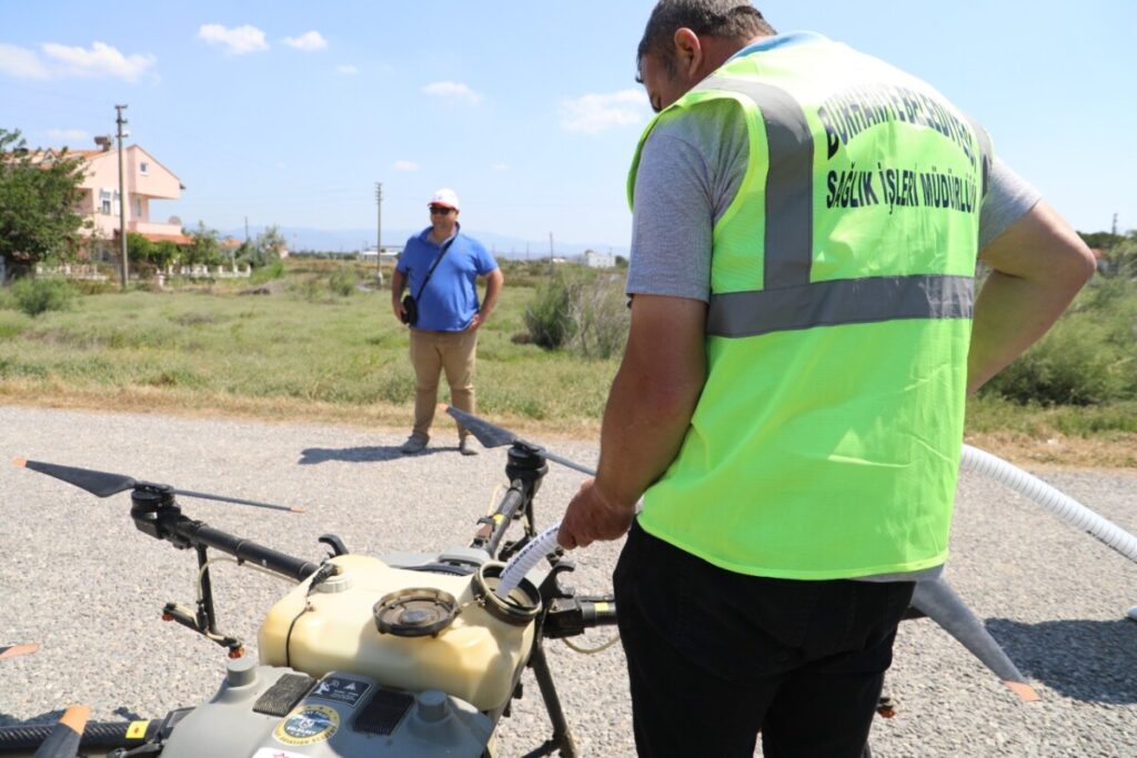 Haşere ve sivrisinek ile mücadelede drone ile yeni bir hamle yapılırken bir yandan da ilçe genelinde, ekipler tarafından yağmur suyu kanalları, menfezler, çöp konteynerleri, gübrelik alanlar, kanalizasyon sistemleri ve larva üremesinin yoğun olduğu durgun su birikintileri larvasit ilaçlar ile ilaçlanmaya devam ediyor.
