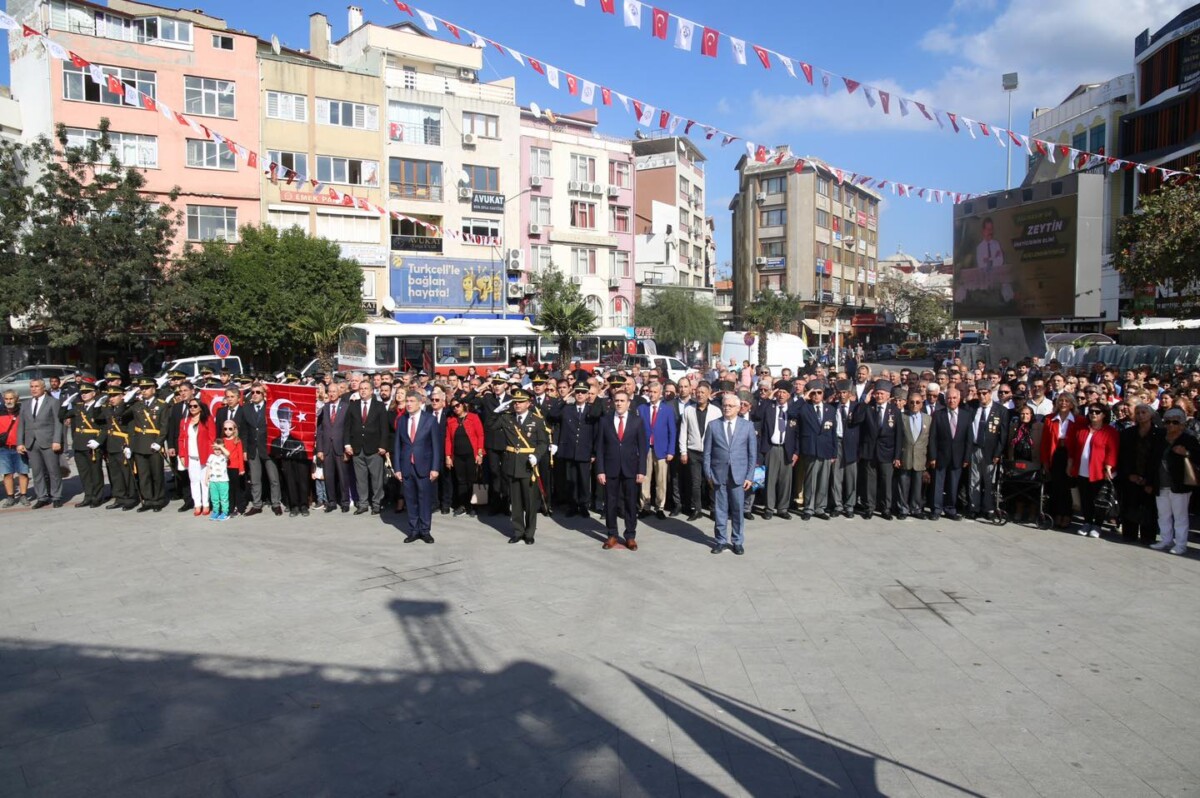 Kutlama programı 28 Ekim Cumartesi günü saat 13:30’da Cumhuriyet Meydanı’nda Atatürk Anıtına çelenklerin sunulmasıyla başladı. Kaymakamlık, Garnizon Komutanlığı ve Belediye Başkanlığı çelenklerinin Atatürk Anıtına sunulmasından ardından Saygı Duruşu ve İstiklal Marşı okundu.