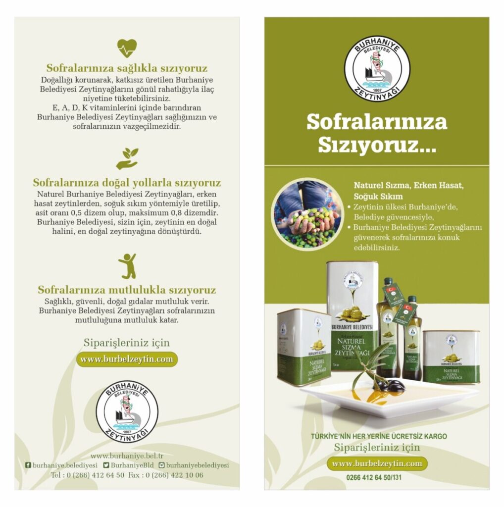 Burhaniye Belediyesi görev alanlarında ve verimli topraklarındaki zeytin ağaçlarından üretilen yeni hasat zeytinyağının www.burbelzeytin.com üzerinden satışa sunulduğunu bildiren Burhaniye Belediye Başkanı Ali Kemal Deveciler “Burhaniye Belediyesi Zeytinyağları için yeni hasat dönemine girdik. Burhaniye ismi artık Türkiye’de bir marka! büyük bir özveri ve titizlik ile sürdürdüğümüz zeytinyağlarımızın üretimi ile Burhaniye’mize kazandırmaya devam ediyoruz. Burhaniye’mizin verimli toprakları geçmişten bugüne birçok uygarlığı beslemiş ve büyütmüş olup şimdi ise, Burhaniye markası artık tüm Türkiye’de sofralara giriyor. Zeytinyağlarımızın kalitesi ve güvenilirliği sayesinde bölgemiz halkına da önemli katkı sağlıyoruz. Burhaniye Belediyesi güvencesi ile satılan zeytinyağlarımızdan Burhaniye’mizin zeytinyağının kalitesi de anlaşıldı. Artık zeytinyağı almak isteyenler ilk olarak Burhaniye ismini de düşünüyor. Bu vesileyle Tüm zeytin emekçilerimize bereketli ve bol kazançlı bir sezon diliyorum” dedi.