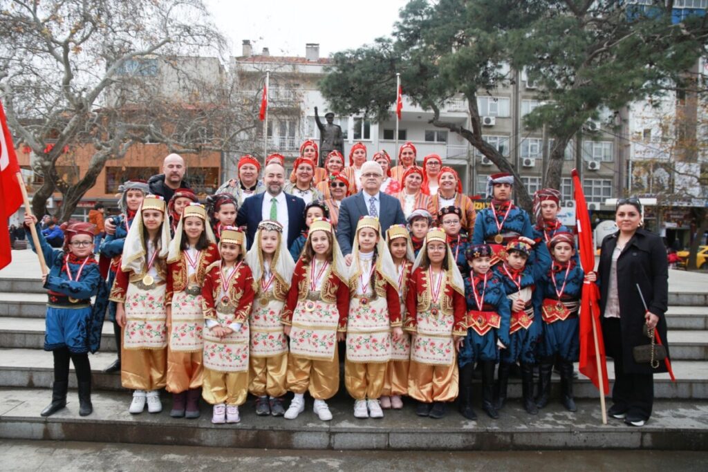 Belediye hizmet binası önünden Cumhuriyet Meydanına yapılan kortej yürüyüşü sonrası Cumhuriyet Meydanı’nda İstiklal Marşı ve Saygı duruşu yapılması ile başladı. İstiklal Marşı ve Saygı duruşunun ardından Başkan Deveciler tarafından Festival Çelengi atatürk anıtına bırakıldı. Yapılan çelenk töreninin ardından Burhaniye Belediyesi Gençlik Merkezi Halk Oyunları ekibinin yaptığı halk oyunları gösterisi yapılarak, vatandaşlara yöremize ait sıcak tarhana çorbası da dağıtıldı.