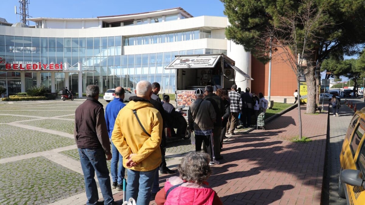 Burhaniye Belediyesi, belediye hizmet binası önünde depremde hayatını kaybeden vatandaşlar için lokma döktürdü.