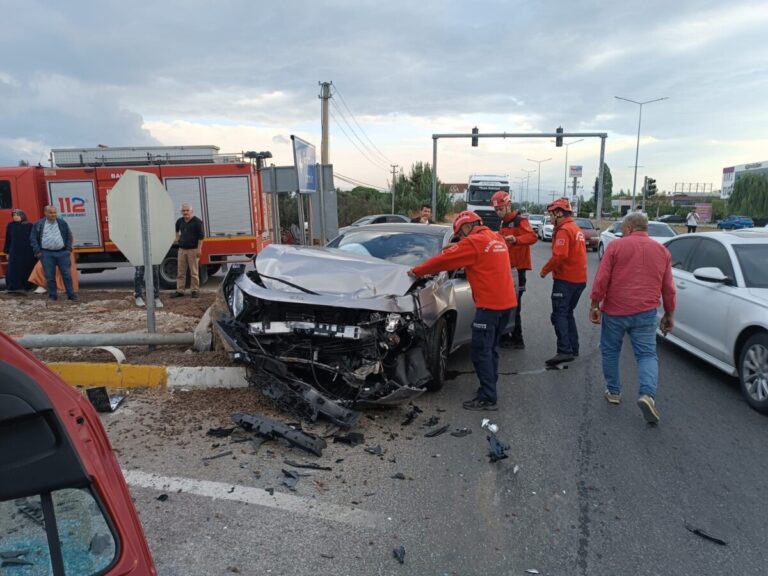 Burhaniye Otogar kavşağında iki aracın çarpışması sonucu çift taraflı yaralanmalı…